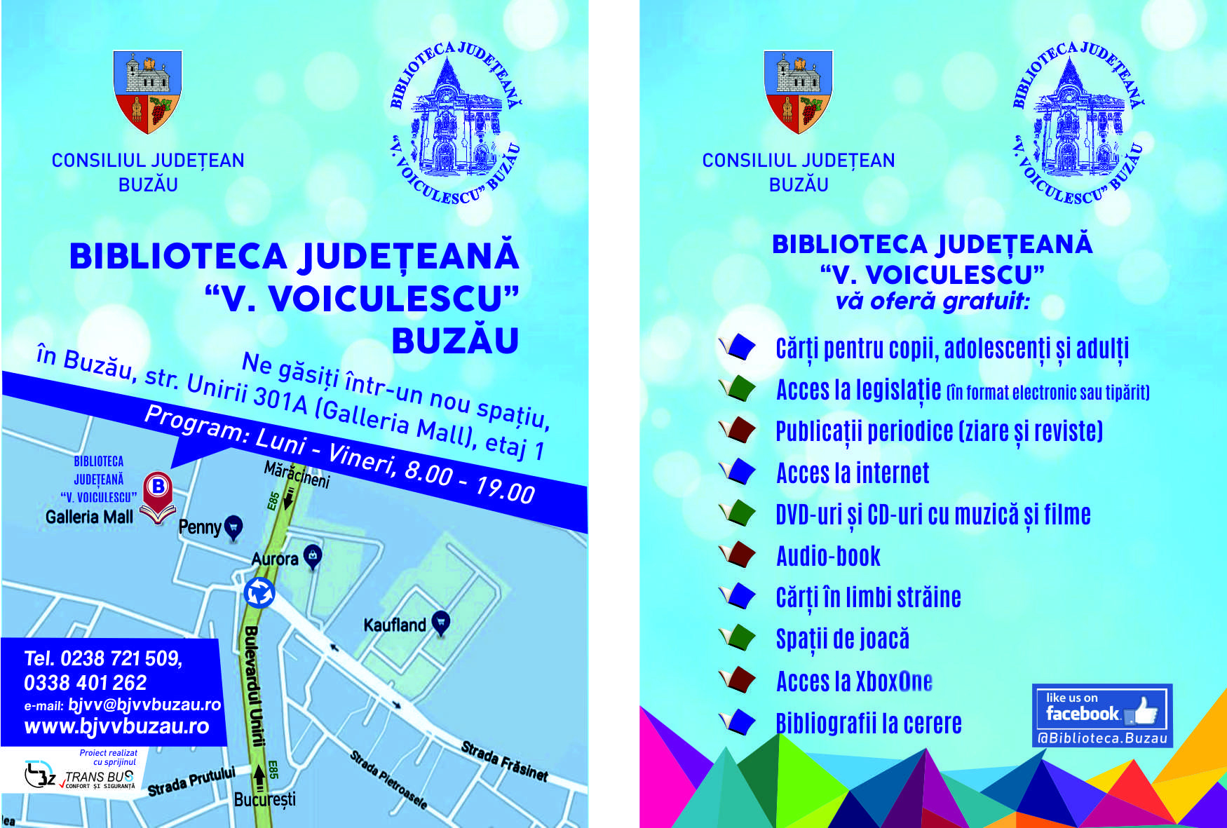 Sală de lectură cărţi şi periodice, relaţii cataloage, informare legislativă, depozit